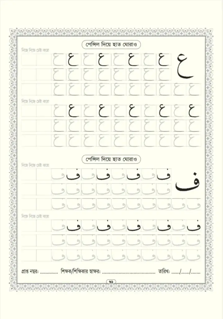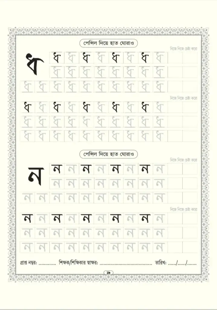 জলছাপ, অক্ষরের উপর হাত ঘোরানো, এবং ধাপে ধাপে চর্চার মাধ্যমে সুন্দর লেখা শেখানো হয়।